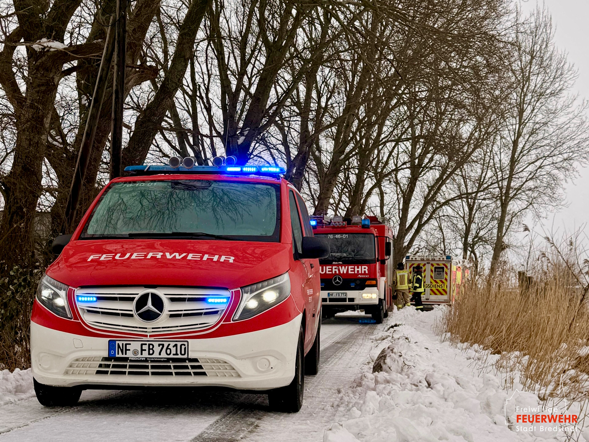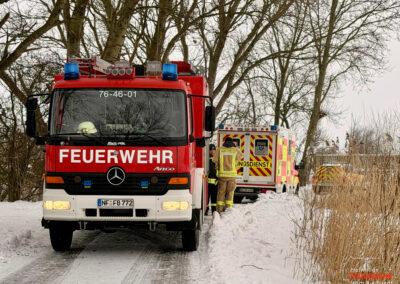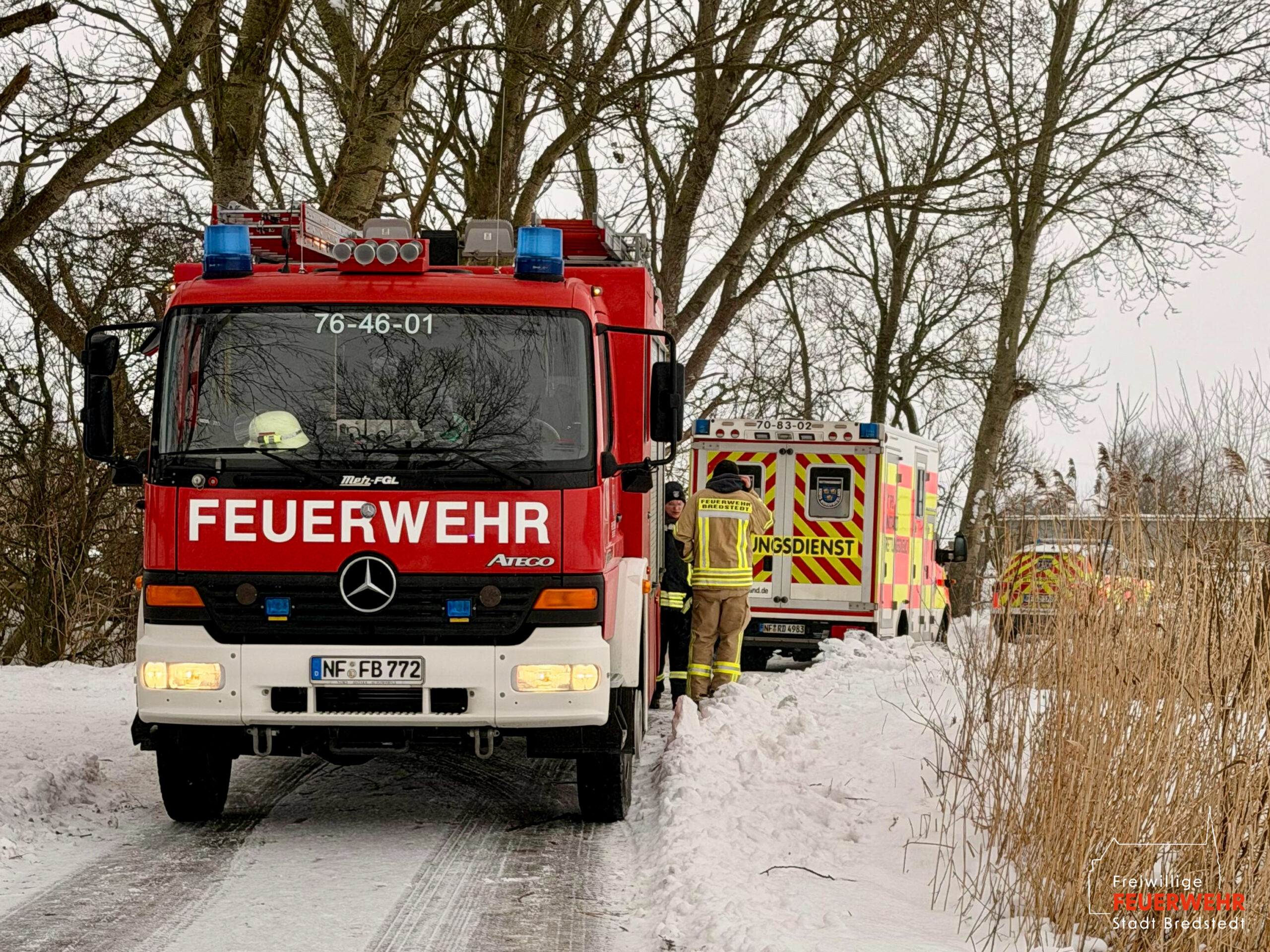 Wir wurden mit dem Stichwort NOTF 01 DLK (medizinischer Notfalleinsatz, zusätzlich ein Hubrettungsmittel erforderlich) zur Unterstützung des Rettungsdienstes in die Hattstedter Marsch alarmiert.