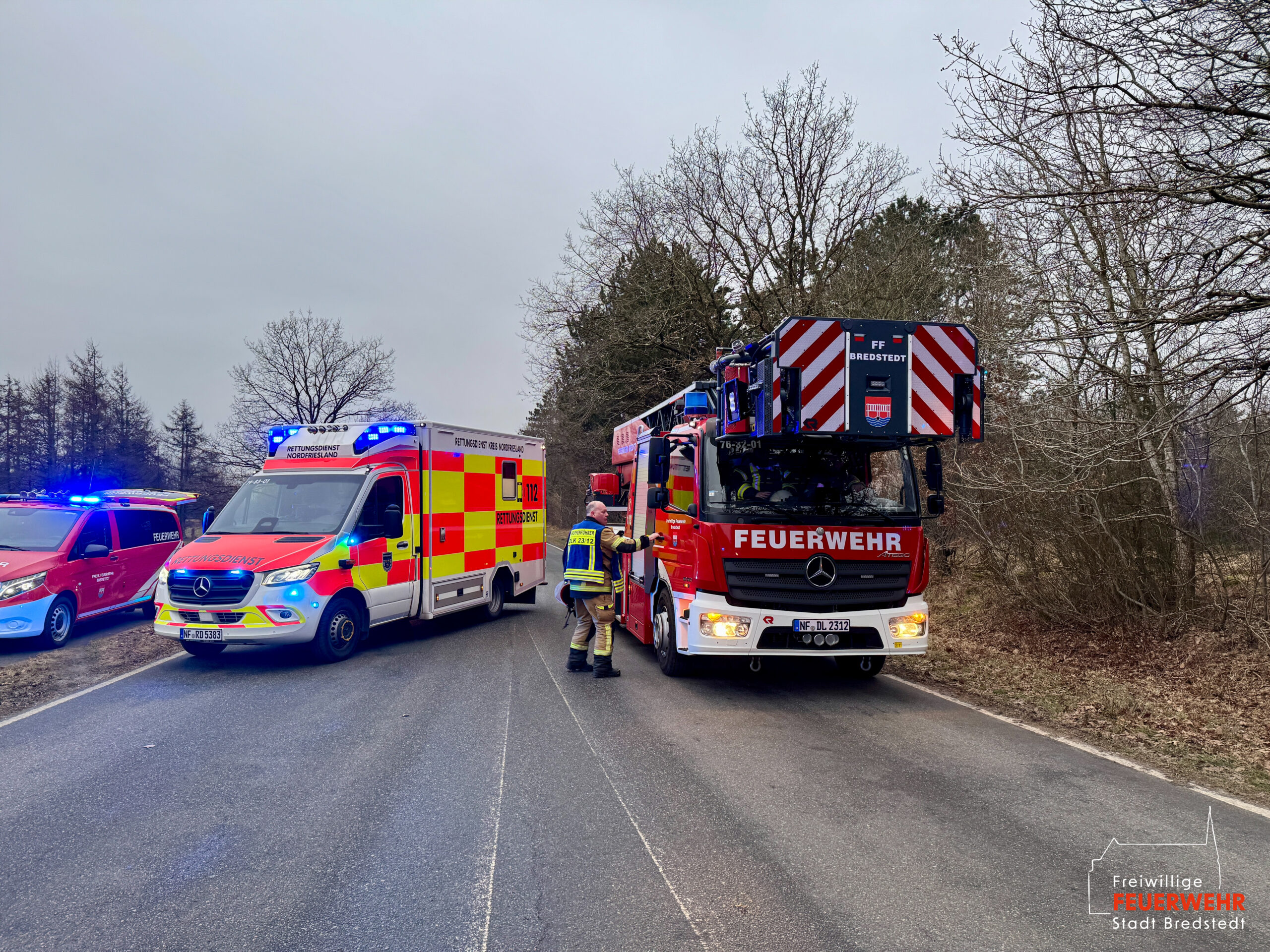 Die Feuerwehr Bredstedt bedankt sich bei allen eingesetzten Einsatzkräften für die gute Zusammenarbeit und wünscht eine schnelle Genesung.