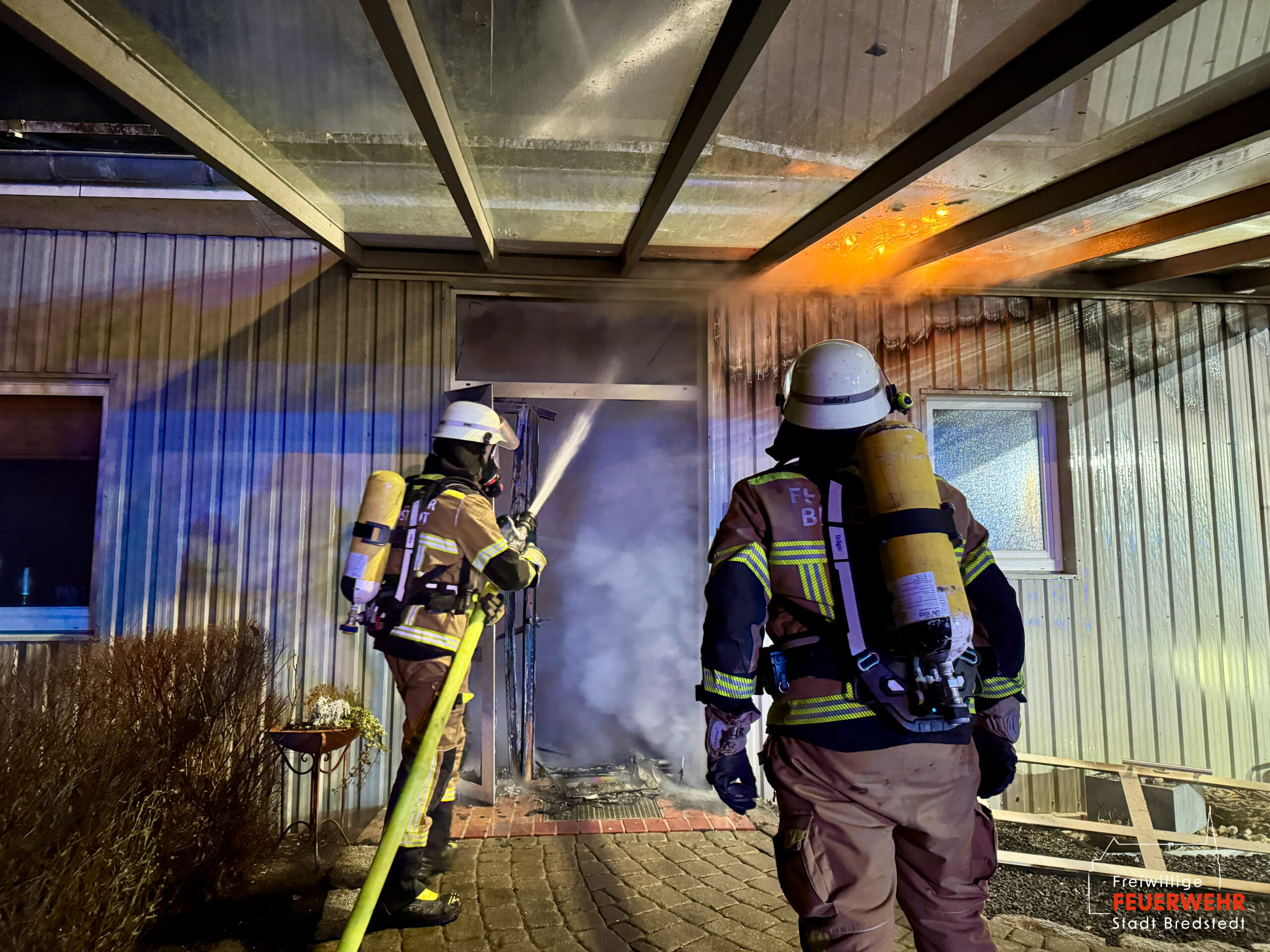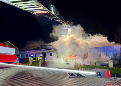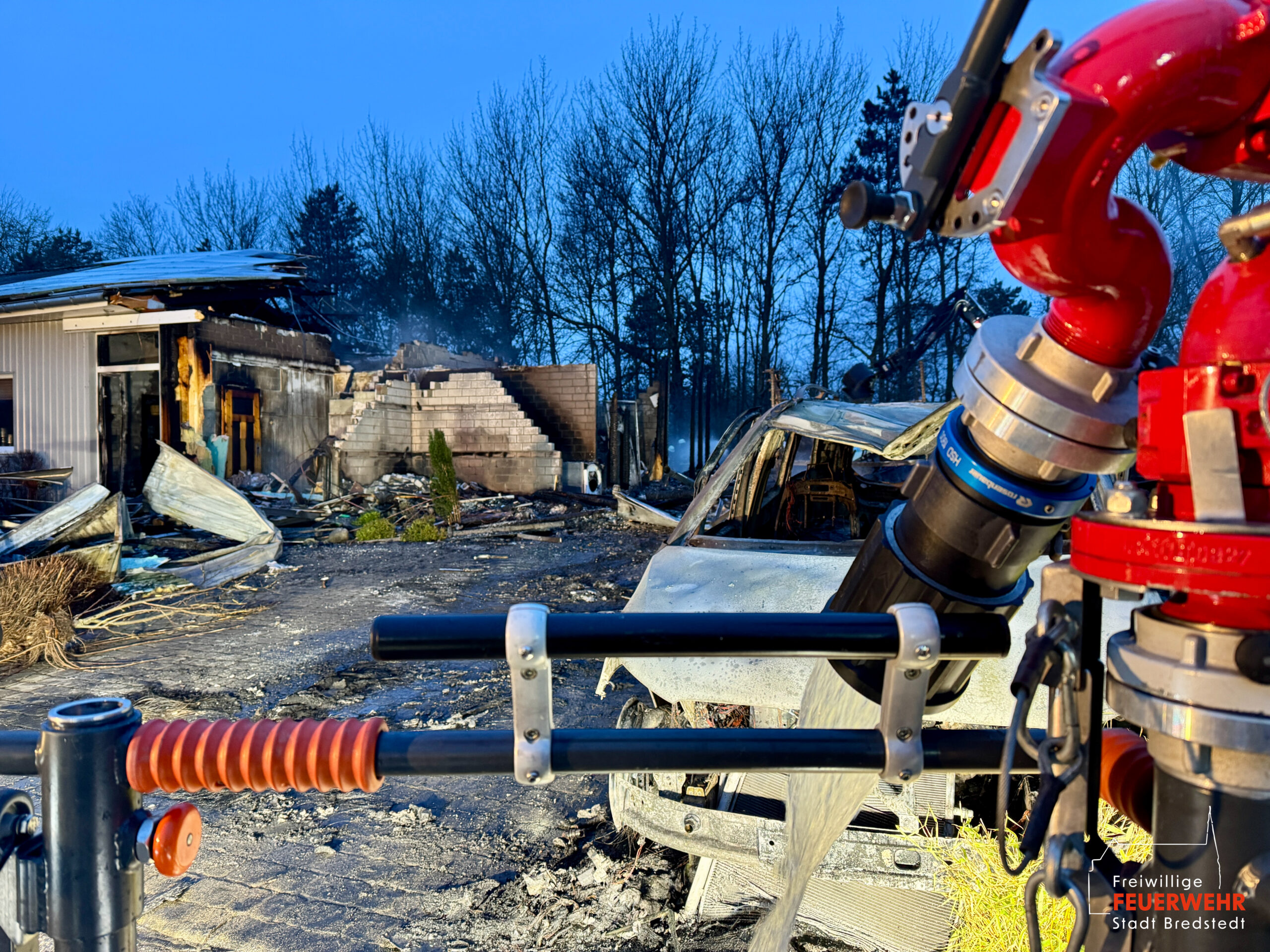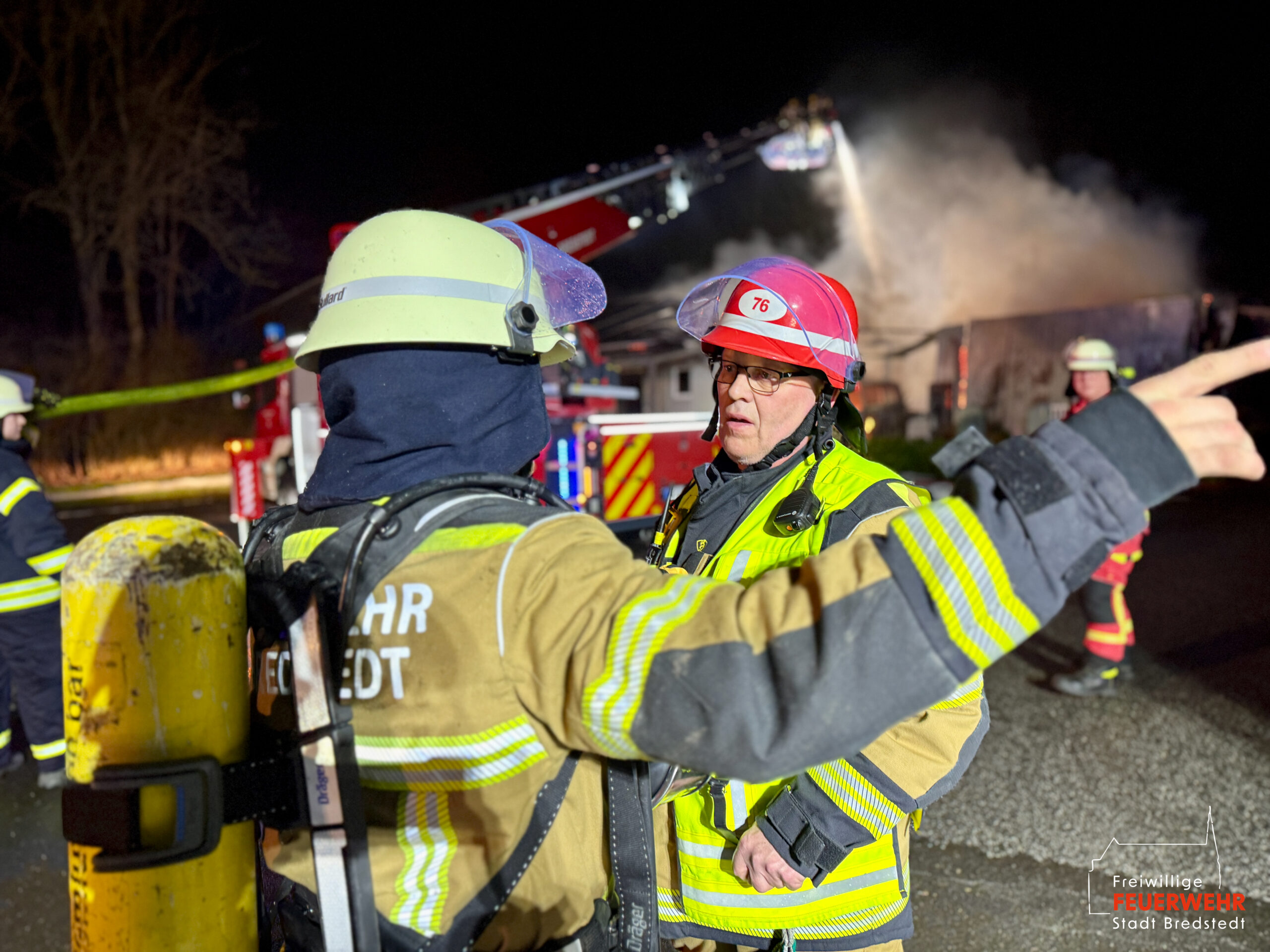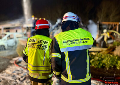 Die Feuerwehr Bredstedt bedankt sich bei allen eingesetzten Organisationen und Einsatzkräften für die herausragende Zusammenarbeit, wodurch ein vollständiger Gebäudeverlust verhindert werden konnte.