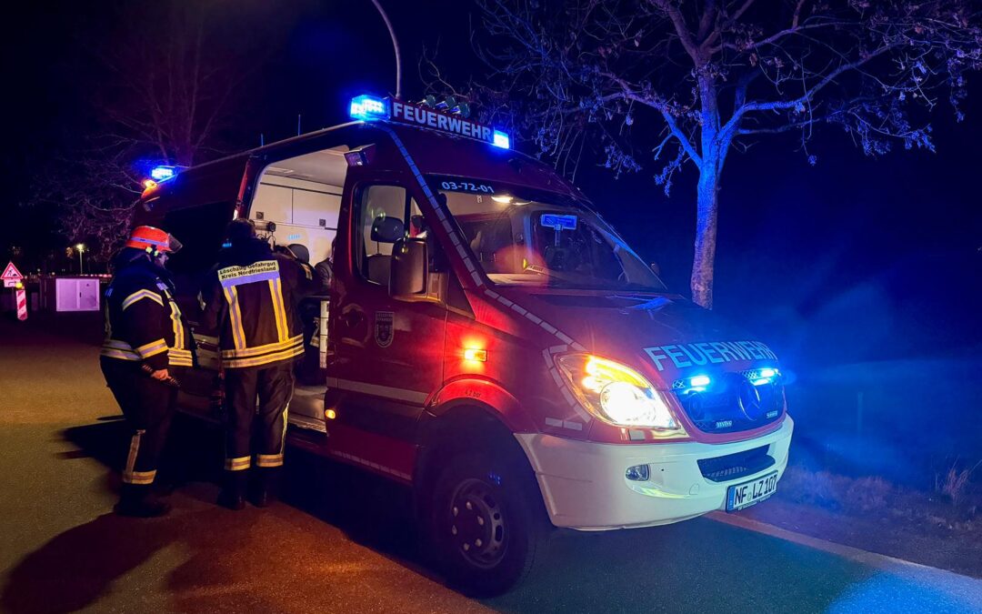 Wir wurden am gestrigen Abend nach Löwenstedt gerufen. Dort sollte es auf offener Straße zu einem deutlich wahrnehmbaren Gasgeruch gekommen sein. Die örtlich zuständige Feuerwehr hatte bei unserem Eintreffen die Örtlichkeit bereits abgesperrt und Trupps mit Pressluftatmern ausrüsten lassen. Zusätzlich bekamen wir die Information, dass vor der Feststellung des Geruches, Arbeiten an einem Gastank stattgefunden haben sollten. Wir statteten den Atemschutztrupp der Löwenstedter Kameraden mit Messtechnik aus, diese nahmen umfangreiche Messungen vor. Es konnten jedoch keine auffälligen Messergebnisse erzielt werden, sodass wir nach ca. 45 Minuten wieder einrücken konnten.