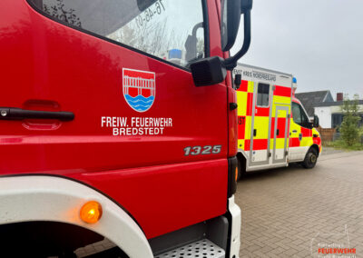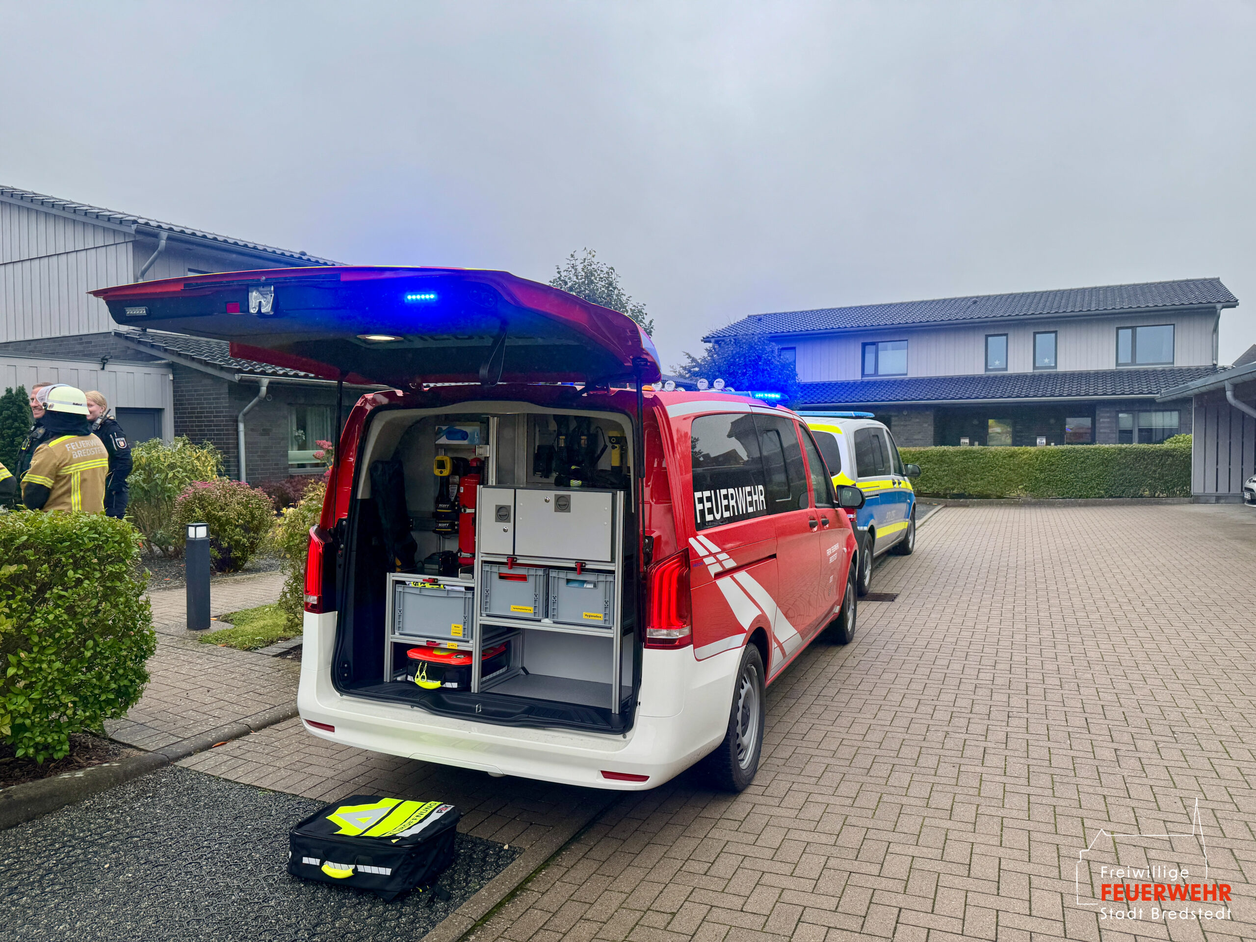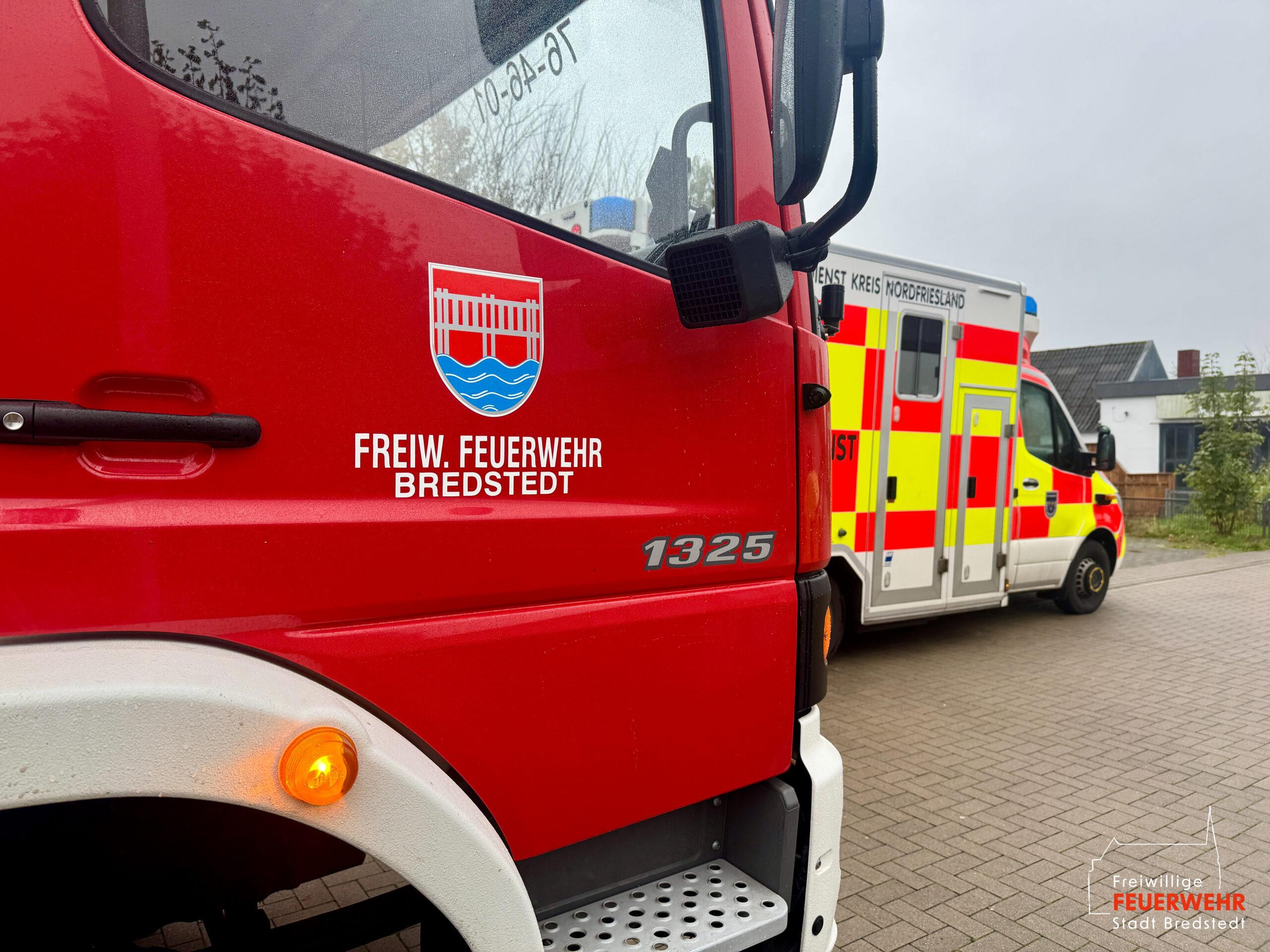 Wir wurden mit dem Stichwort NOTF 01 TV (medizinischer Notfalleinsatz hinter verschlossener Tür) in eine Wohnanlage im Bredstedter Stadtgebiet alarmiert.