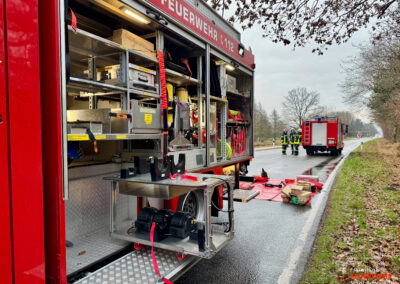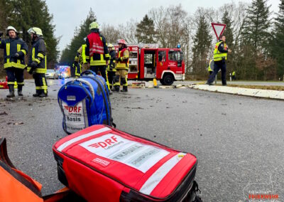 Wir wurden mit dem Stichwort TH R5 (Technische Hilfeleistung mit Menschenleben in Gefahr, Großeinsatz Rettungsdienst bis 5 Verletzte) zur Unterstützung der Feuerwehr Bargum bei einem Verkehrsunfall alarmiert.