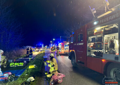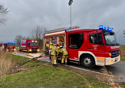 Wir wurden mit dem Stichwort FEU 2 R5 (Feuer 2 Löschzüge, Großeinsatz Rettungsdienst bis 5 Verletzte) zur überörtlichen Unterstützung in die Reußenköge alarmiert.