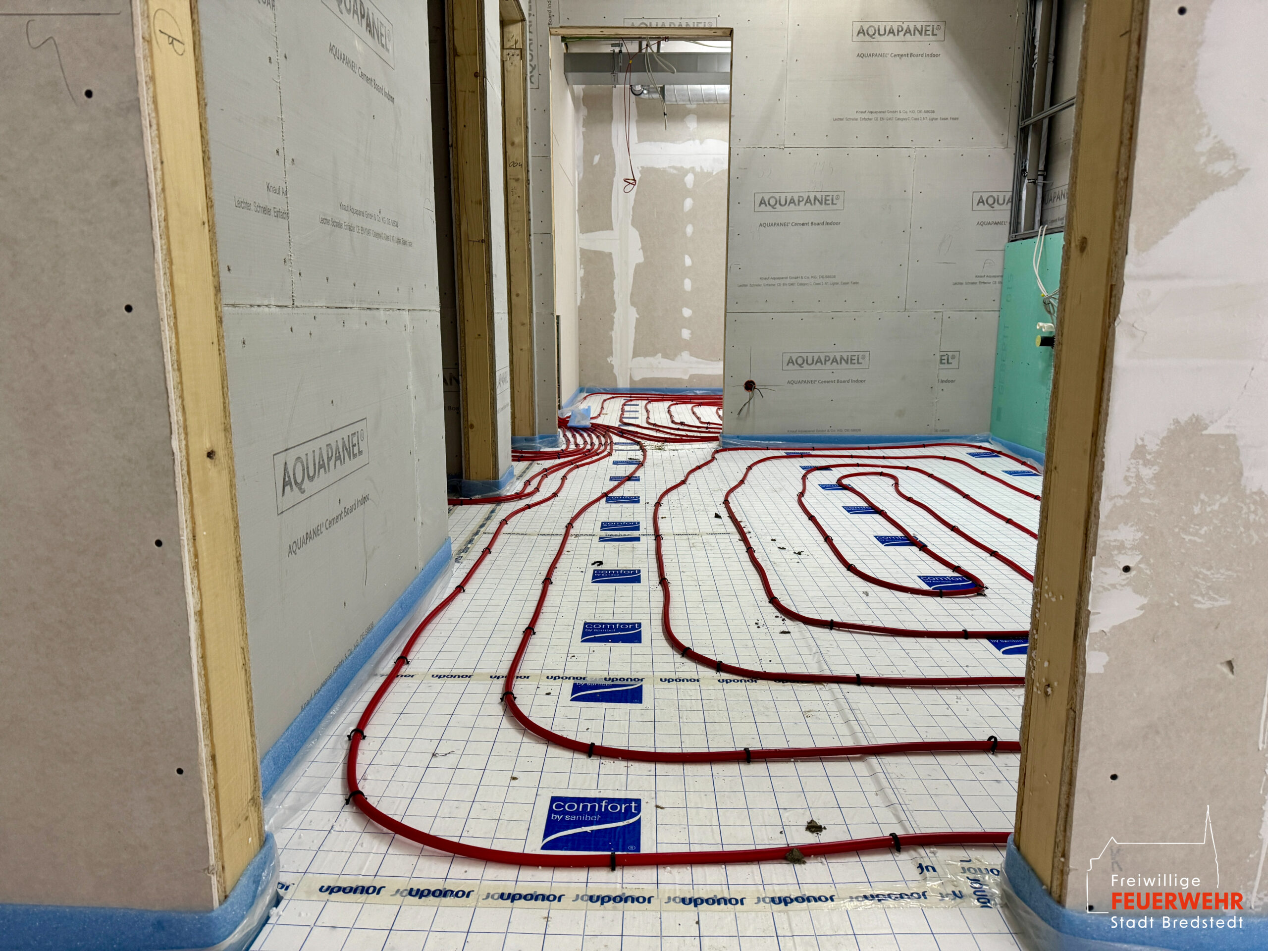 Noch in dieser Woche sollen die Fahrzeughalle (Altbau) und der längs verlaufende Neubau mittels eines großen Durchbruchs miteinander verbunden werden. In einer umfassenden Baubesprechung wurden letzte Absprachen zur Hallensanierung getroffen. Anfang April soll hier der erste Abschnitt eingerichtet werden. Spätestens dann sind Fahrzeuge, Kameradinnen und Kameraden sowie der Einsatzablauf aus dem Bauvorhaben nicht mehr herauszuhalten. Eine teilweise Auslagerung von Einsatzfahrzeugen scheint dabei zum aktuellen Zeitpunkt unausweichlich.